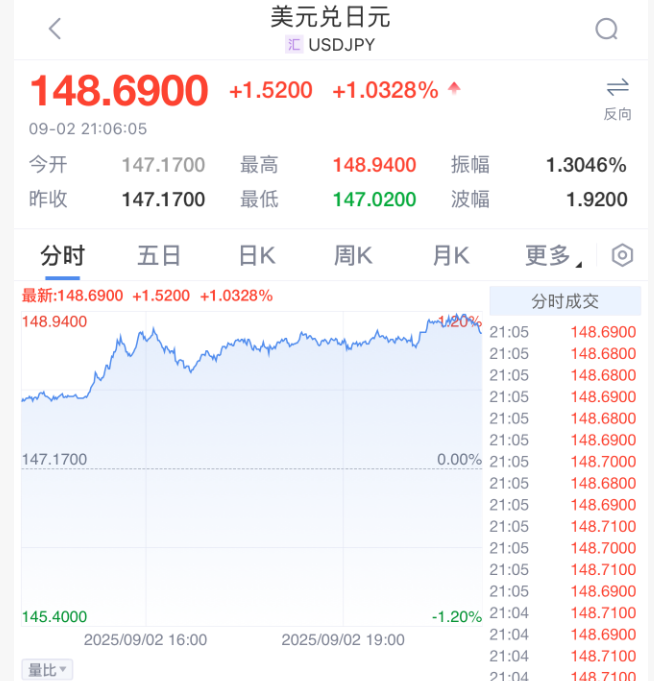 日元同样表现疲软,下跌逾1%至148.79日元/美元,创一个月新低。在媒体报道称自民党干事长森山拟辞职后,市场压力加剧。同时,日本央行副行长冰见野良三的讲话缺乏鹰派信号。
