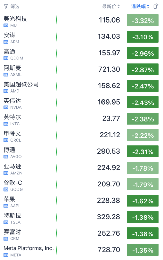 科技股集体大跌。