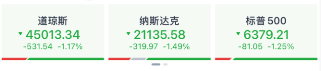 美股开盘之后,道指跌超500点,纳指、标普指数跌超1%。