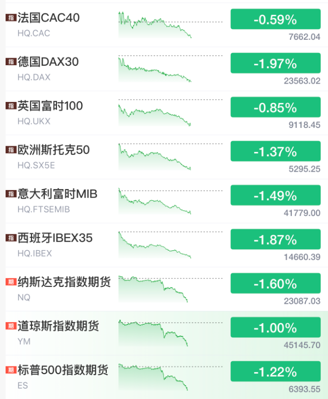 黑色星期二,欧洲股市跌幅扩大,美股开盘大跌。